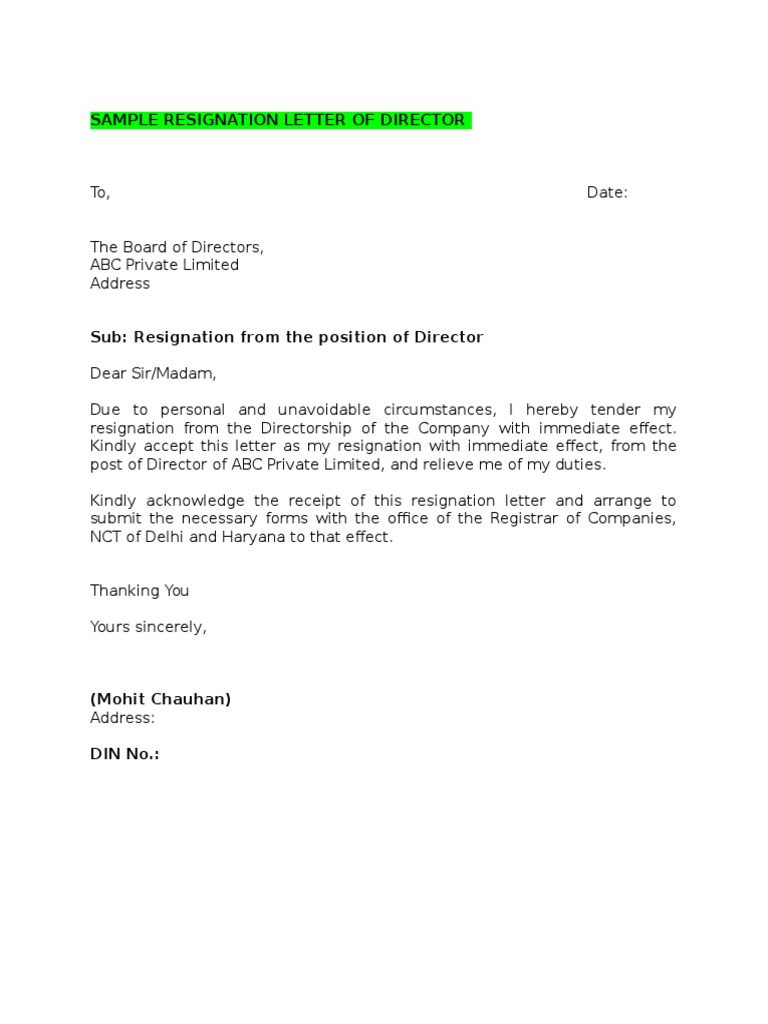 Standard Director Resignation Letter Templates At Allbusinesstemplates Com